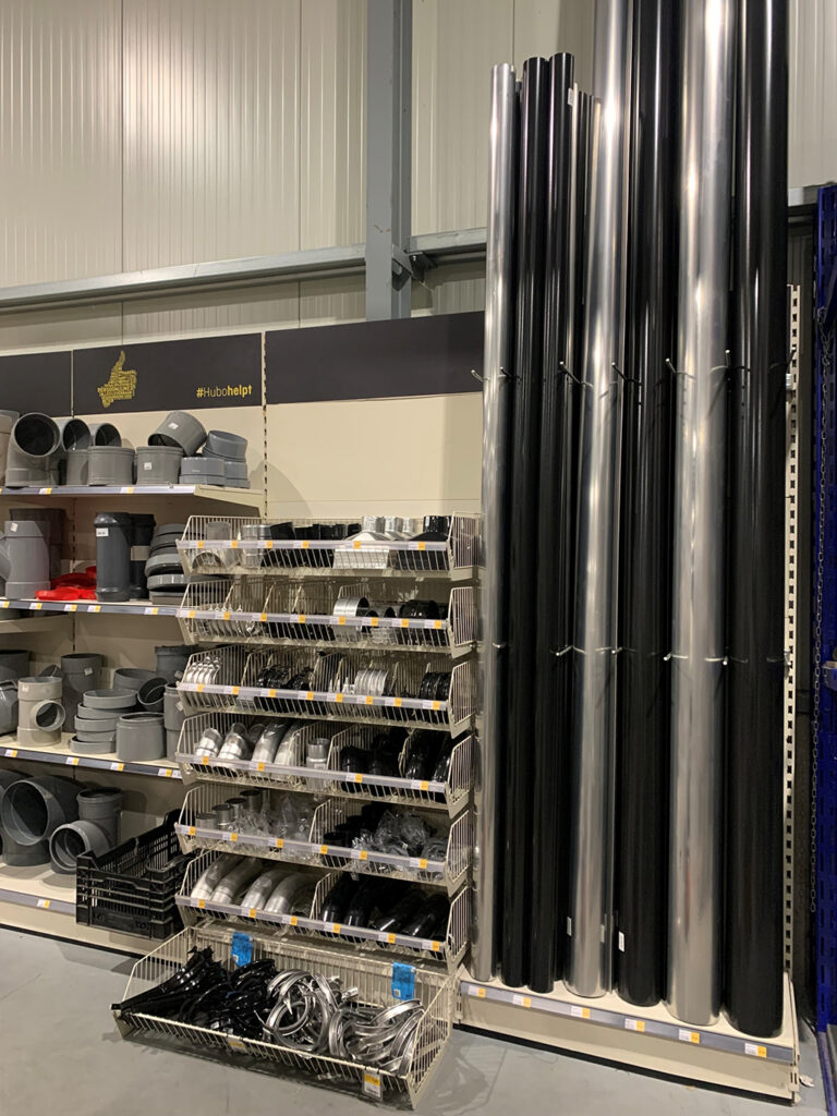Na het maken van een proefopstelling bij DGN in Hoevelaken, was de inlading (het vullen van het schap) bij Hubo Zundert het startschot voor de eerste bouwmarkt met voorraad in Nederland.