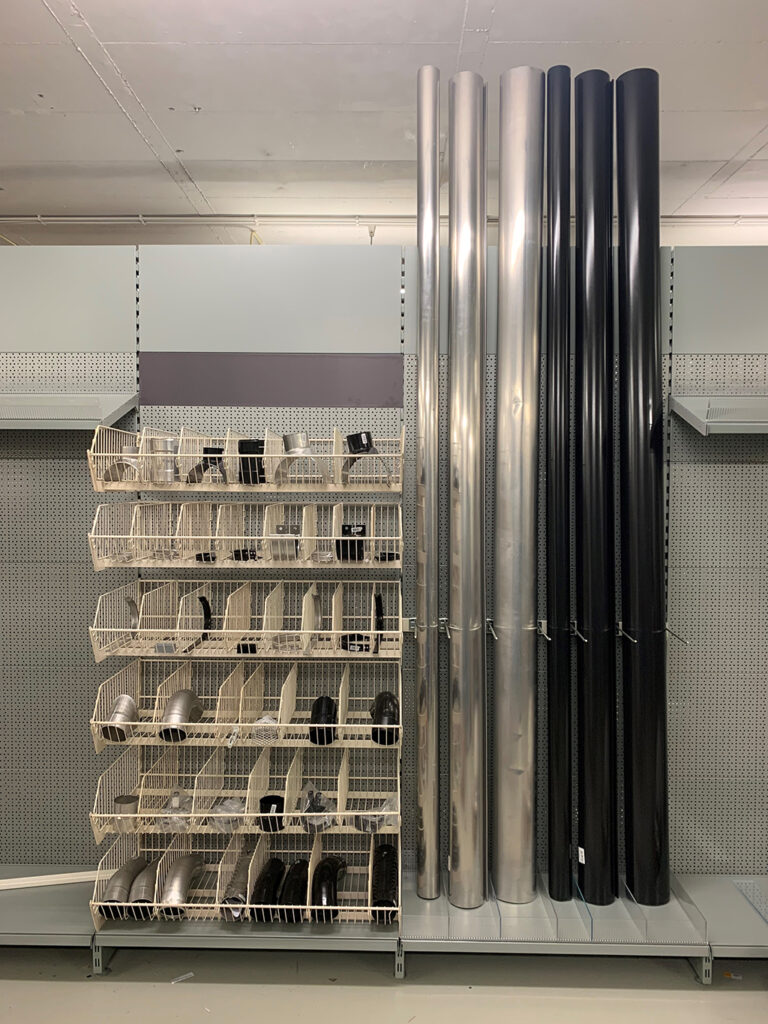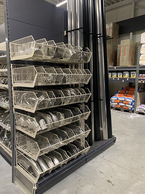 Verderop in de maand kwam ik een nalevering brengen en zei tegen dhr. Oomen (Piet) dat ik een idee had om het schap te verbeteren. Piet zei; “En kom je me dat alleen vertellen? Of ga je daar ook nog wat aan doen?”. Geweldig! Daarna samen met Piet het schap aangepast naar een combinatie van manden en planken. Magneetborden erboven om het af te maken.