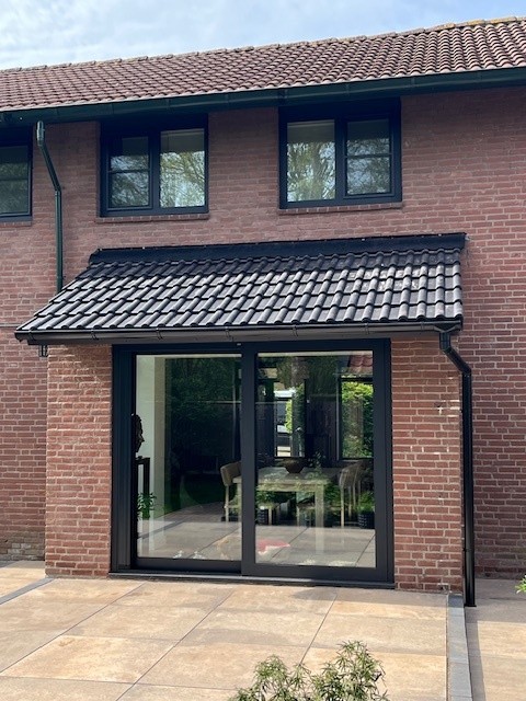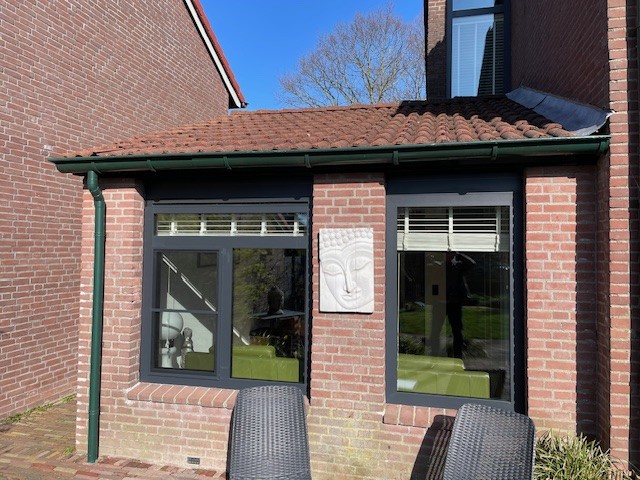 Het eerste project is uitgevoerd door Ricardo, zijn zoon en ondertussen mede eigenaar van Burg & De Heer. Bij twee gezellige dames op de Boeier in Lelystad met gevoel voor stijl. Weg met die kromgetrokken, saai gekleurde, pvc onderdelen en vervangen door strakke aluminium onderdelen waar de dames nog decennialang plezier van gaan beleven.